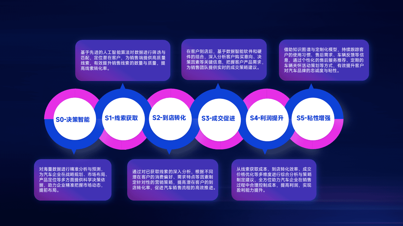 通过拓宽潜在客户来源、、优化线索分配并提高到店转化率,,以增强销售效率。。同时,,,,利用线索数据不断优化分析模型,,,,有效提升转化率,,,扩大营销影响力。。。